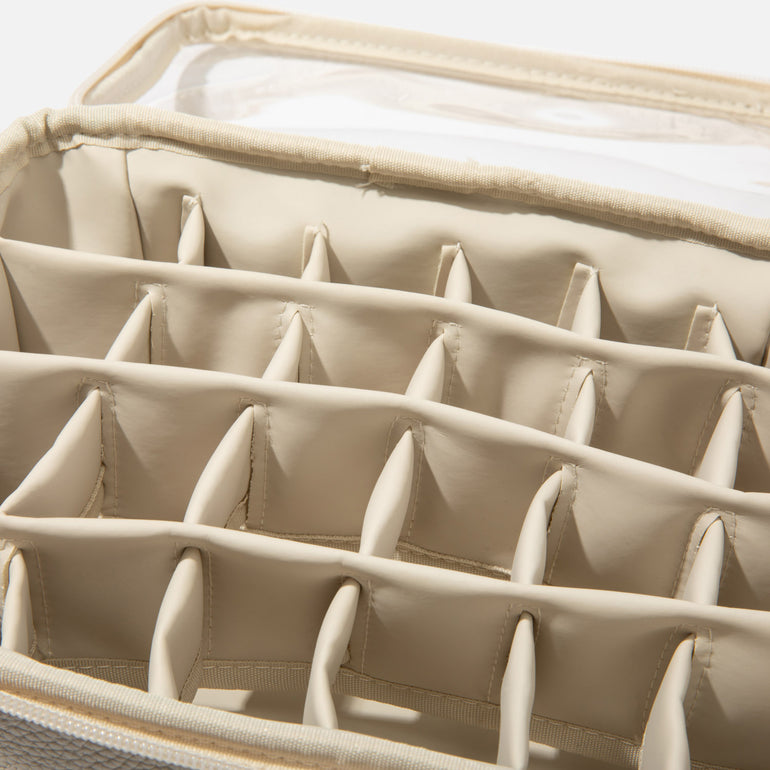 The Polish Packing Cube holds up to 24 bottles, with flexible internal dividers that adapt to different bottle shapes and sizes - keeping your collection secure, organised and protected whilst on the move.